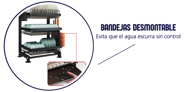 El secaplatos organizador de tres niveles con gran capacidad es la solución ideal para mantener tu cocina ordenada y funcional. Con una capacidad para 12 platos y dos niveles extras para el resto de utensillios.